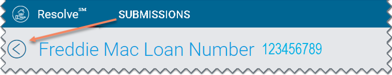 The Freddie Mac Loan Number for the workout is displayed at the top of the page. Click on the left arrow anytime you want to return to the dashboard page.