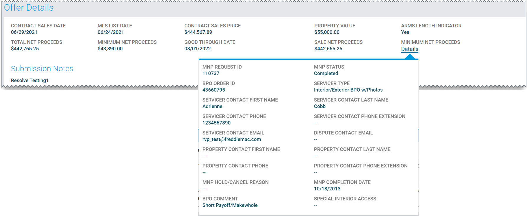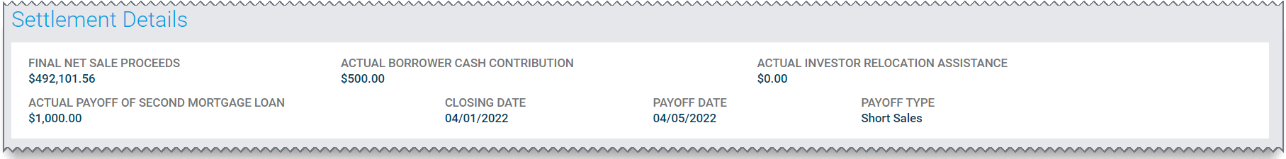 The short sale Details page provides summary, loan-level, workout and/or settlement information for short sale requests submitted through Workout Prospector, the Resolve Liquidation API or directly through Resolve's user interface.